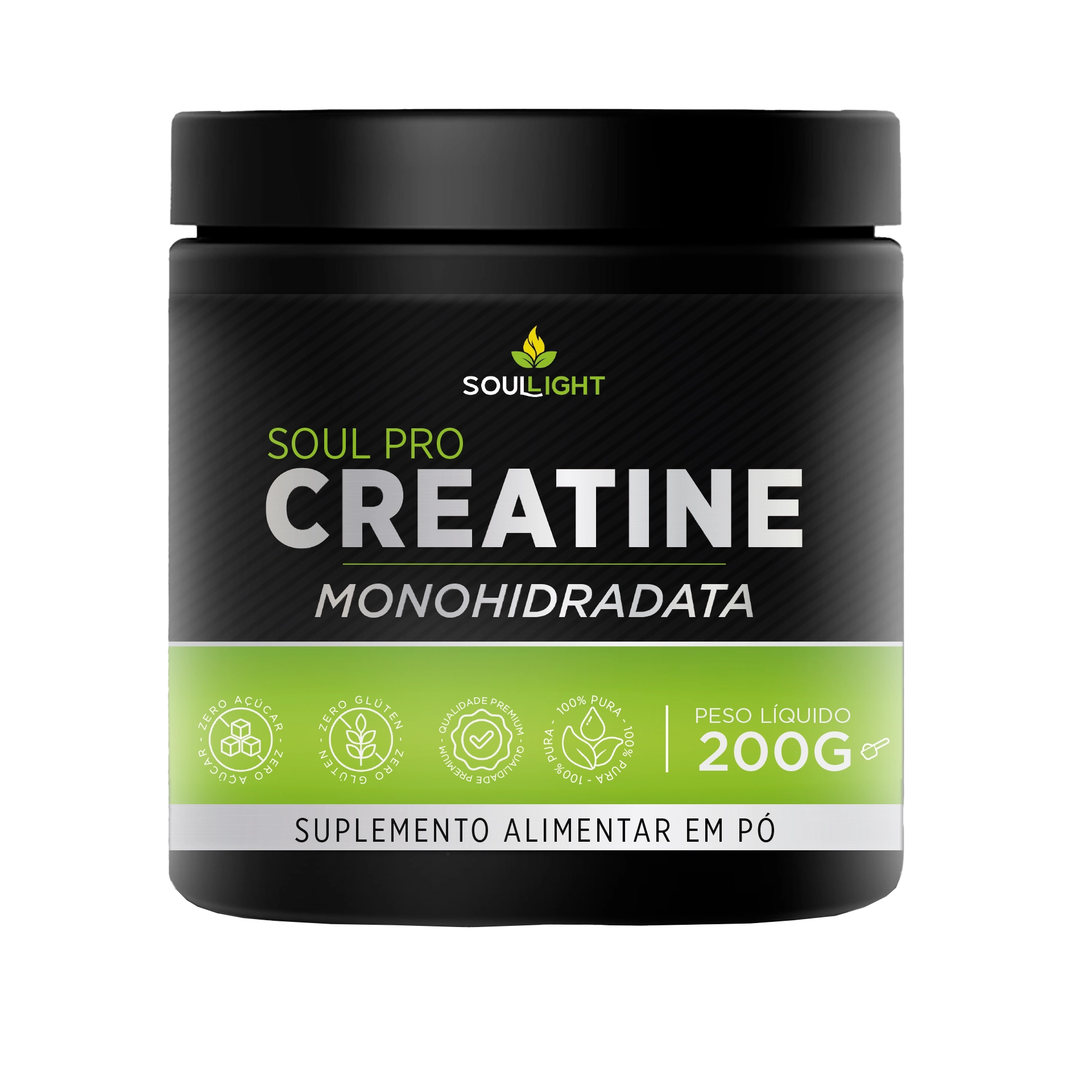 Um frasco contém 200 gramas de creatina em pó.